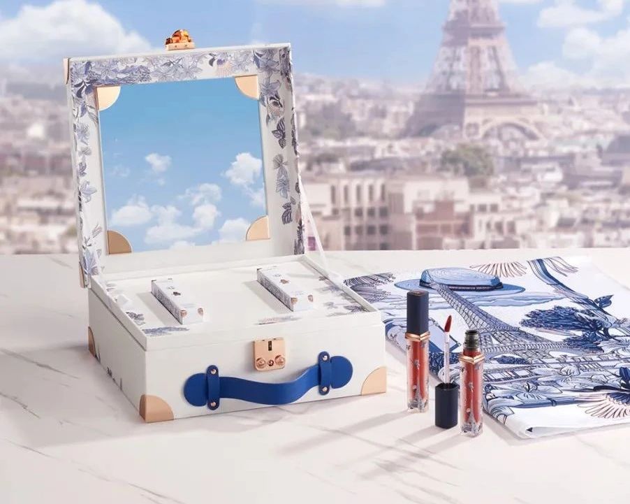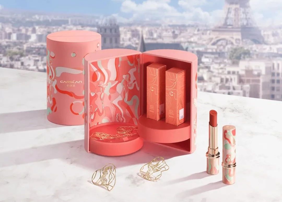此番,Lydie Bossuet与卡姿兰唇膏的联名款选择了挚爱唇釉,通过“一场浪漫的冒险之旅”,以“首创”之姿带你去冒险,开拓世界彩妆之美。Lydie Bossuet也将其设计匠心体现在礼盒本身、唇釉包材、唇膏包装盒以及丝巾周边4个层面。