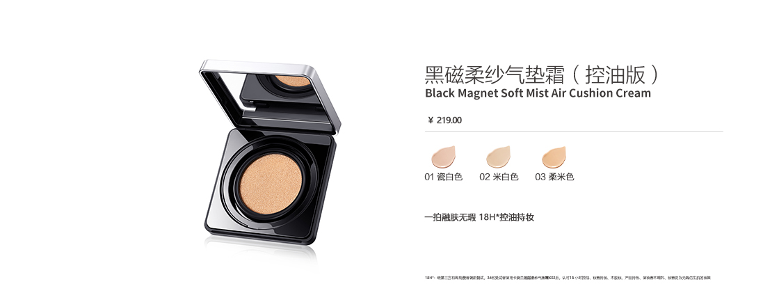 产品名称:黑磁柔纱气垫霜(控油版)