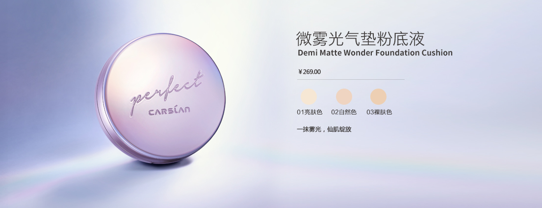 精致而细腻的微雾光,雾感质地,微光透润,呈现自然美好的肌肤质感,轻轻一拍,随时随地气场满满。