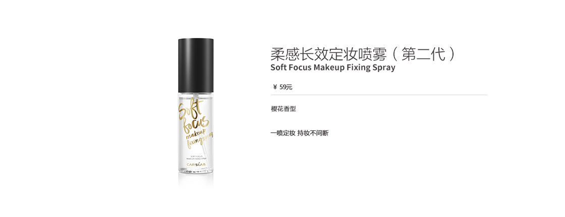细腻水雾一喷定妆,给予肌肤舒适感,并且带来清新肤感。