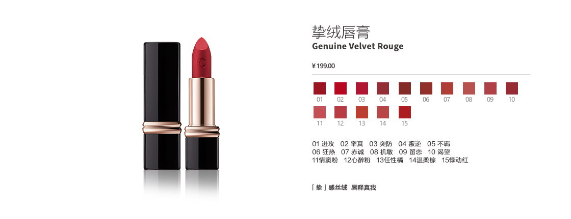 一触显色,天鹅绒般顺滑质感, 打造优雅柔雾唇,展现饱满具力量的纯正色泽。