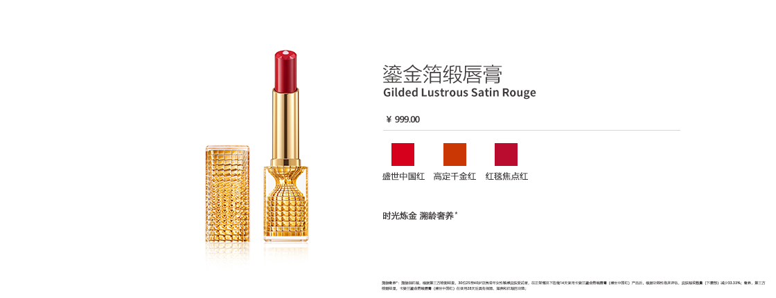 溯龄指抗皱,根据第三方检测结果,30位25至40岁亚洲成年女性敏感皮肤受试者,在正常情况下连续14天使用卡姿兰鎏金箔缎唇膏(盛世中国红)产品后,根据功效性临床评估,皮肤皱纹数量(下唇部)减少33.33%;奢养,第三方检测结果,卡姿兰鎏金箔缎唇膏(盛世中国红)在使用28天后具有保湿、滋养和抗皱的功效;